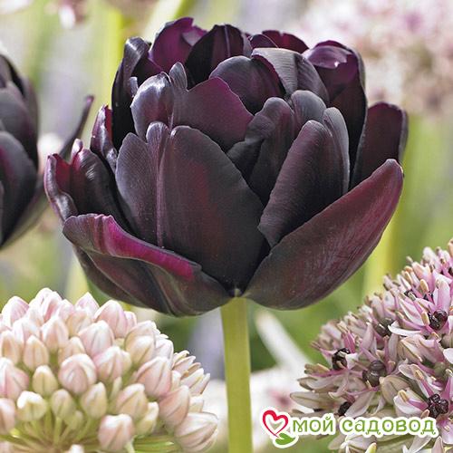 Читать далееРоскошный махровый, почти круглый, тюльпан имеет уникальную окраску – по черному тону растушевка до темно-бордового или чернильно-фиолетового оттенка. Необычный, изящный, роскошный цветок. Относится к тюльпанам среднего срока цветения.